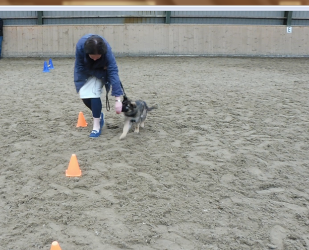 Dan komt er een vreemde vrouw op mij en mijn baasjes af. Ik besluit haar wel aardig te vinden. Ze legt wat handige dingen uit en we gaan de eerste oefeningen doen.