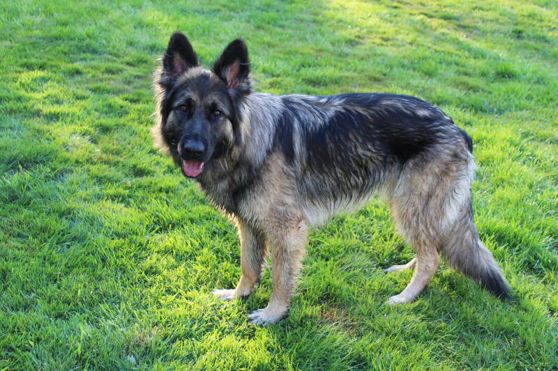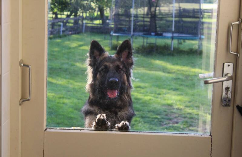 Samen met de baasjes liep ik in het weiland. En toen zag ik een eend in een sloot, daar wilde ik wel mee spelen! Maar de eend vloog weg, en ik wilde zo graag achter die eend aan dat ik zelfs vergat dat er een sloot was! Een grote sprong... Daar lag ik in het water... De eend zag ik niet meer, die was van schrik weggevlogen. De baasjes moesten hard lachen en knepen hun neus dicht. Thuis gekomen mocht ik ook nog geeneens naar binnen, maar moest ik alleen in de achtertuin blijven omdat ik te vies was...