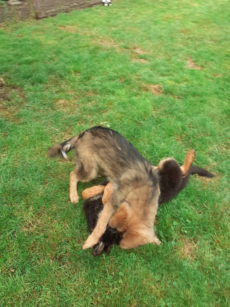 6 augustus kwam zus Birca op bezoek! We konden het samen nog goed vinden! Samen door de tunnel scheuren, klieren bij de waterbak... Ook gingen we even bij de kalfjes kijken.